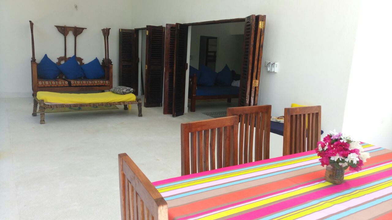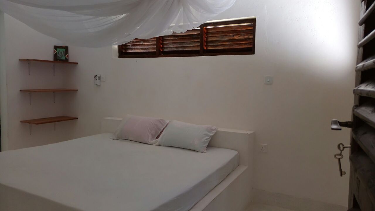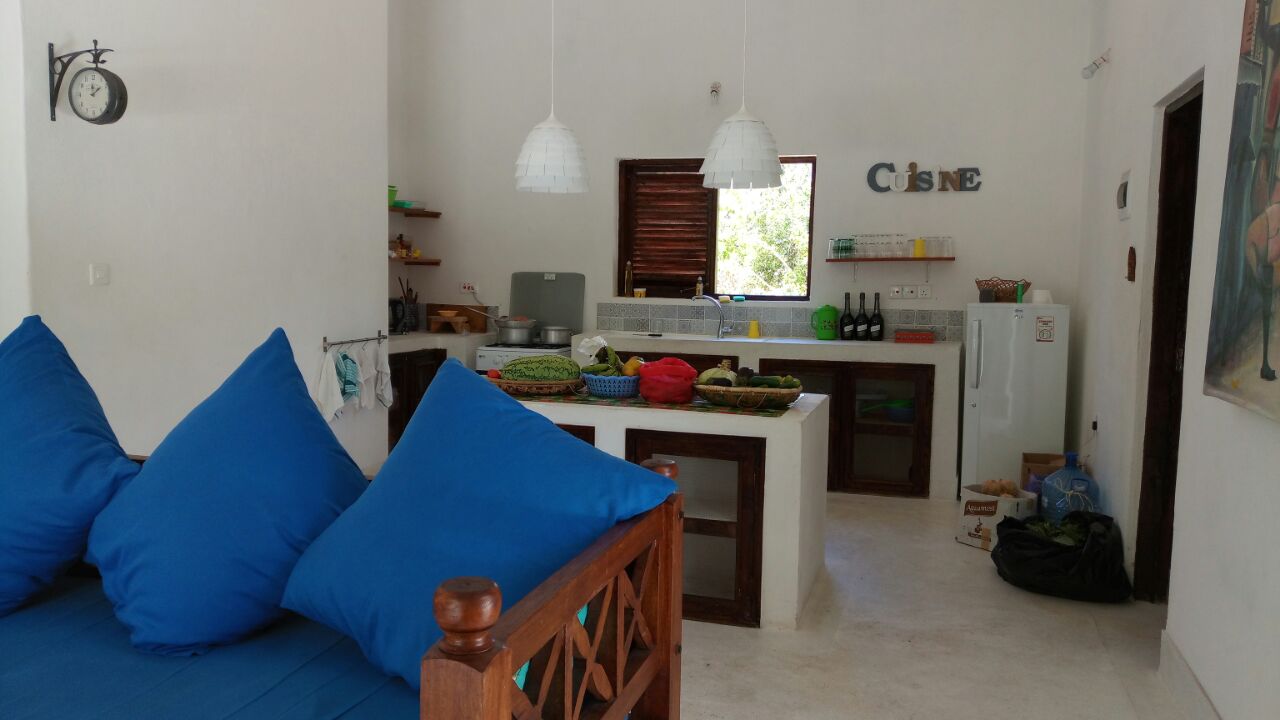 1 acre, second row, four bedroom modern house with open plan kitchen. Big veranda. Fenced, connected to national electrical grid, 10,000L underground water tank connected to rain water collection system.